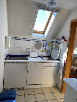 Die Ferienwohnung Nr. 1 wurde 1992 erbaut und befindet sich in schönen, ruhiger Lage im Ortskern von Morsum. Die gemütlich und hell eingerichtete 2 Personen-Wohnung verfügt über eine komplett eingerichtete Einbauküche mit Mikrowelle, Ceran-Kochfeld, Geschirrspüler, Toaster und einem Kühlschrank. Das separate Schlafzimmer ist mit einem Doppelbett (2m X 2m) ausgestattet, es verfügt über ein sehr großen Kleiderschrank, das Schlafzimmer hat einen direkten Zugang zum Badezimmer (Dusche, WC, Föhn vorhanden). Das Wohnzimmer ist hell und modern eingerichtet, es verfügt über Kabel-TV mit einem Flat-TV, Radio und einen Internetanschluss über W-LAN. Gegen Aufpreis können eine 3. bzw. 4. Person eine 1.-Raumwohnung mit zwei Einzelbetten (zusammenstellbar) und einem extra WC mit Waschbecken mit angemietet werden (nur auf Anfrage). Den Gästen steht eine Terrasse mit Grillplatz und einer Liegewiese mit Strandkorb zur Verfügung. Ein überdachter PKW-Stellplatz sowie Fahrräder (Benutzung auf eigene Gefahr) stehen ebenfalls zur Verfügung. |